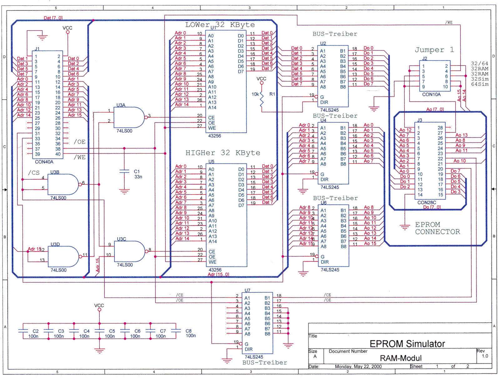 und ein RAM-Modul mit den S-RAMS (2*32k) und den 74LS245 Richtung Zielsystem.