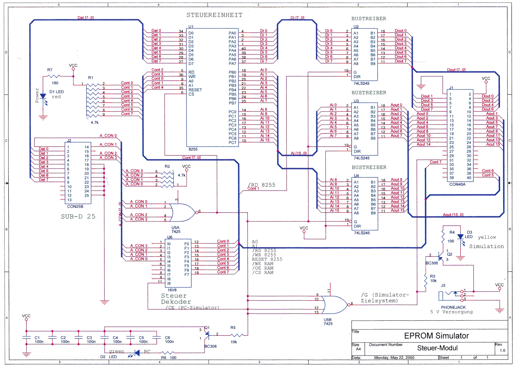 Unsere Projektarbeit wird zwei PLatinen umfassen, ein Steuermodul ( 8255 und div.74LS245)