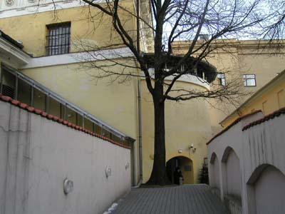 Das Rigaer Goethe-Institut befindet sich im historischen Stadtkern, in unmittelbarer Nachbarschaft zum Parlament>, das man hier die 'Saeima' nennt. Nach eigenen Angaben handelt es sich, was die Unterbringung betrifft, um eines der bemerkenswertesten Goethe-Institute überhaupt. Ich kann das nur bestätigen. Das Gebäude, man nennt es das 'Arsenal', weil es sich um das alte Rigaer Zollhaus handelt, dürfte locker einige hundert Jahre alt sein. Neben dem Goethe-Institut befindet sich dort auch die Galerie für moderne Kunst. Man betritt das Institut über den aus dem Mittelalter stammenden Jungfrauenturm, den man nur über ein Gelände erreicht, das in Kirchenbesitz ist. Jedoch wurde durch den hiesigen Pfarrer ein ganz normaler irdischer Zutritt zugesichert, indem man dem Goethe-Institut ein kleines Stück vom Klostergarten für einen Durchgang> abgegeben hat. Durch die unmittelbare Nachbarschaft zum Kloster sollen eine zeitlang auch zahlreiche Nonnen in den Deutschkursen des Instituts gewesen sein. Inzwischen kommen nicht mehr so viele, vermutlich können sie inzwischen alle deutsch. Das Institutsgebäude wurde vor einigen Jahren einer außerordentlich aufwendigen Sanierung unterzogen. In beinahe jedem Raum im unteren Bereich gibt es eine endlos hohe gewölbte Decke. Überall stehen Säulen herum, was zwar unpraktisch ist, aber wahnsinnig gut aussieht. Es wurde viel mit Glas gearbeitet, weshalb ich mich immer etwas beobachtet fühle. Im Foyer hängen derzeit wunderschöne Fotos aus dem "neuen" Berlin. Ein kleiner Gruß aus der Heimat. (Da ist wieder das Wort...) Der größte Teil der Büros befindet sich auf einem ausgebauten Dachboden. Mein Arbeitsplatz ist jedoch in der Bibliothek>. Meine Aufgabe hat zwar damit nichts zu tun, aber hier ist viel Platz. Es ist keine sehr große Bibliothek, aber es gibt alle Zeitschriften, die man sich vorstellen kann. Außerdem auch einige Tageszeitungen, die allerdings immer ein paar Tage hinterher sind und ganz offensichtlich nicht in der richtigen Reihenfolge ankommen. Außerdem finden sich dort jede Form von Belletristik und etliche Goethe-Biografien. Alles in allem ist das ein Haus, in dem man es sehr gut aushalten kann. |