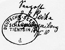 Zuerst soll jedoch an die Linie "Shanghai - Tientsin" erinnert werden. Der dort beschriebene Stempel "d" wurde lt. Schlimgen (7, S. 812) nochmals beobachtet.