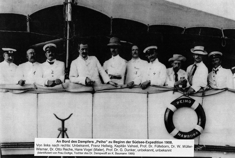 Leiter des ersten Expeditionsjahres (15.5.08-30.6.09) war der Tropenmediziner und Ethnograph Professor Dr. Friedrich Fülleborn. Seine wissenschaftlichen Mitarbeiter waren (4)