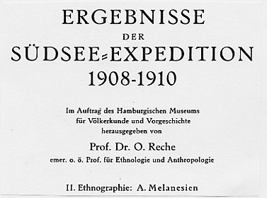 Eine der vielen Publikationen. Hier von Dr. Otto Reche, dem Anthropologen der ersten Expedition unter Professor Fülleborn. Generell wurde mehr von der zweiten Expedition publiziert, die unter der Leitung von Professor Krämer stand. |