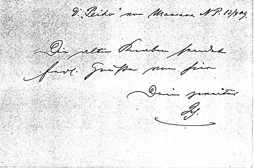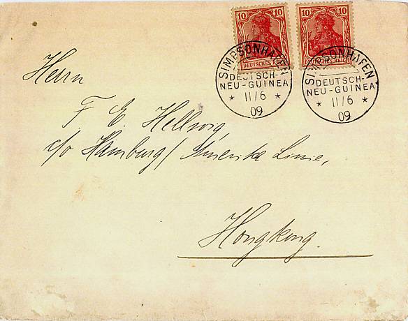 Abbildung 13: 11.6.09 An F. Hellwig, Von Simpsonhafen nach Hongkong. Rückkehr von der Befahrung des Kaiserin-Augusta-Flusses. Adresse "F.E.Hellwig c/o Hamburg / Amerika Linie".
