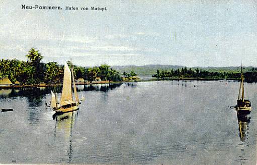 Abbildung 11: 13.4.09 An F. Hellwig, Dampfer "Peiho" vor Massawa, Nordküste Neu-Pommerns. Massawa liegt an der Nordküste der Gazelle-Halbinsel. Dort besaß die NGC eine große Pflanzung. Sammlung Baumann.